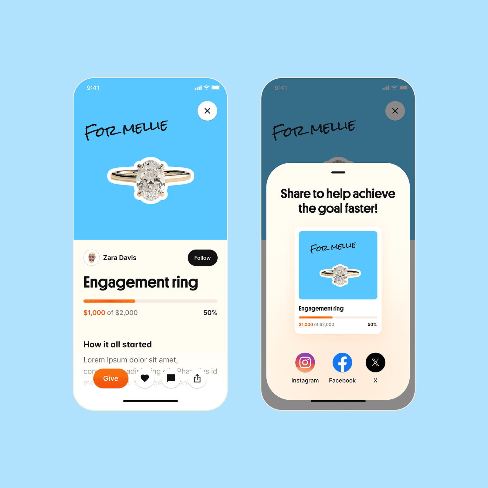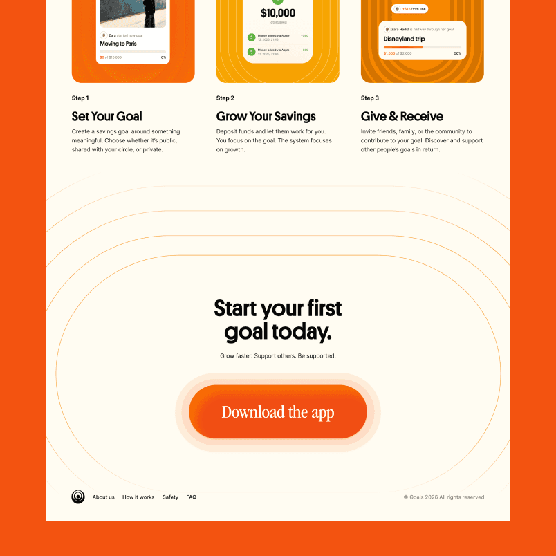 An energy-led identity for a social savings app powered by cryptocurrency, built to motivate users, encourage sharing, and help turn long-term goals into real momentum.